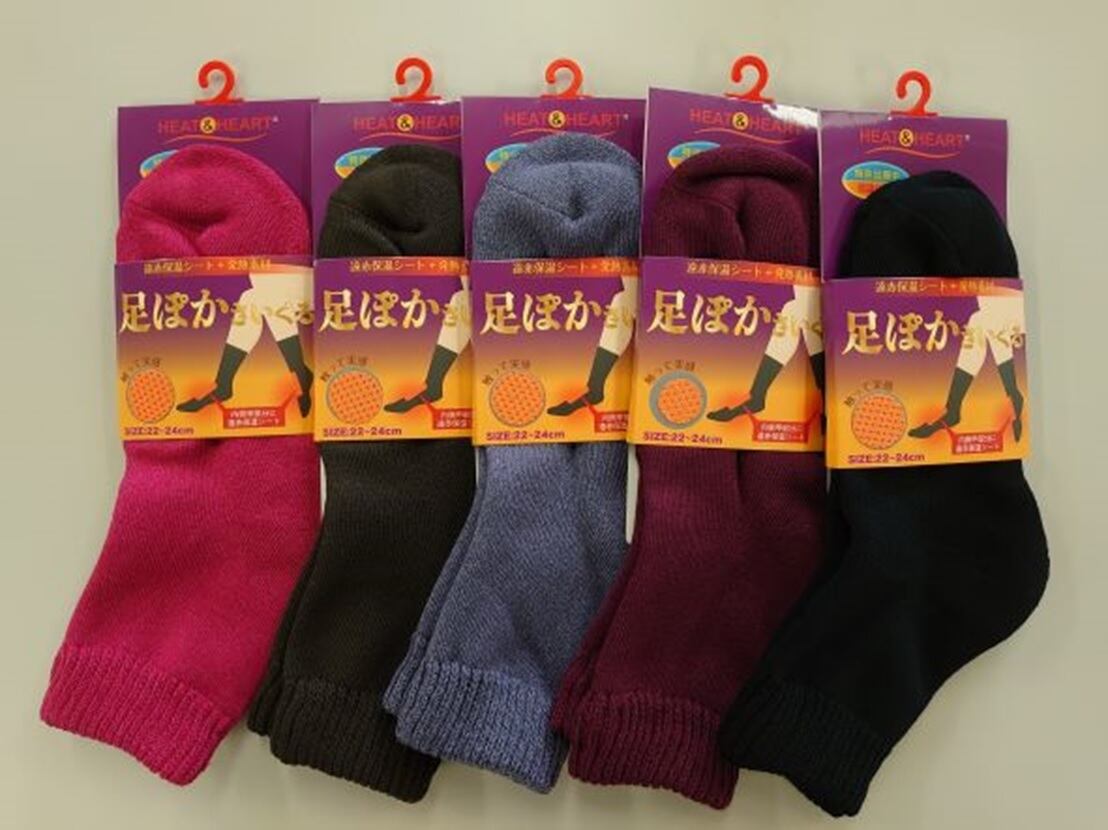 保温効果により足が冷えにくい。遠赤外線効果で足から体全体を暖かく包み込む。