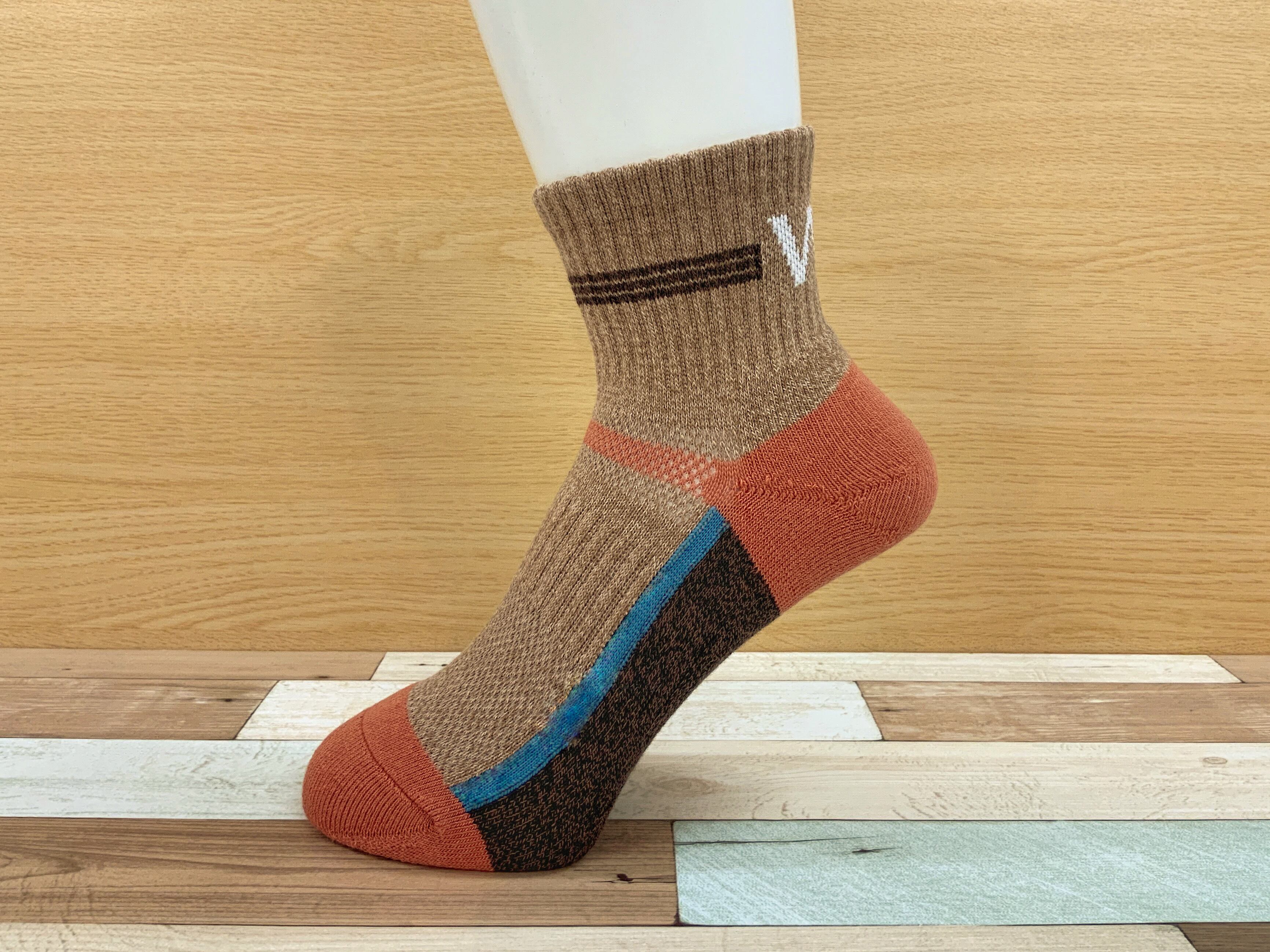 人体の足首角度に合わせ、「かかと部分が直角になるように設計」することで従来品のように口ゴム部分で締め付けるのではなく、全体で包み込むようにフィットさせる快適な履きごごちを実現しています。歩行を目的としたウォーキングに最適な靴下です。
