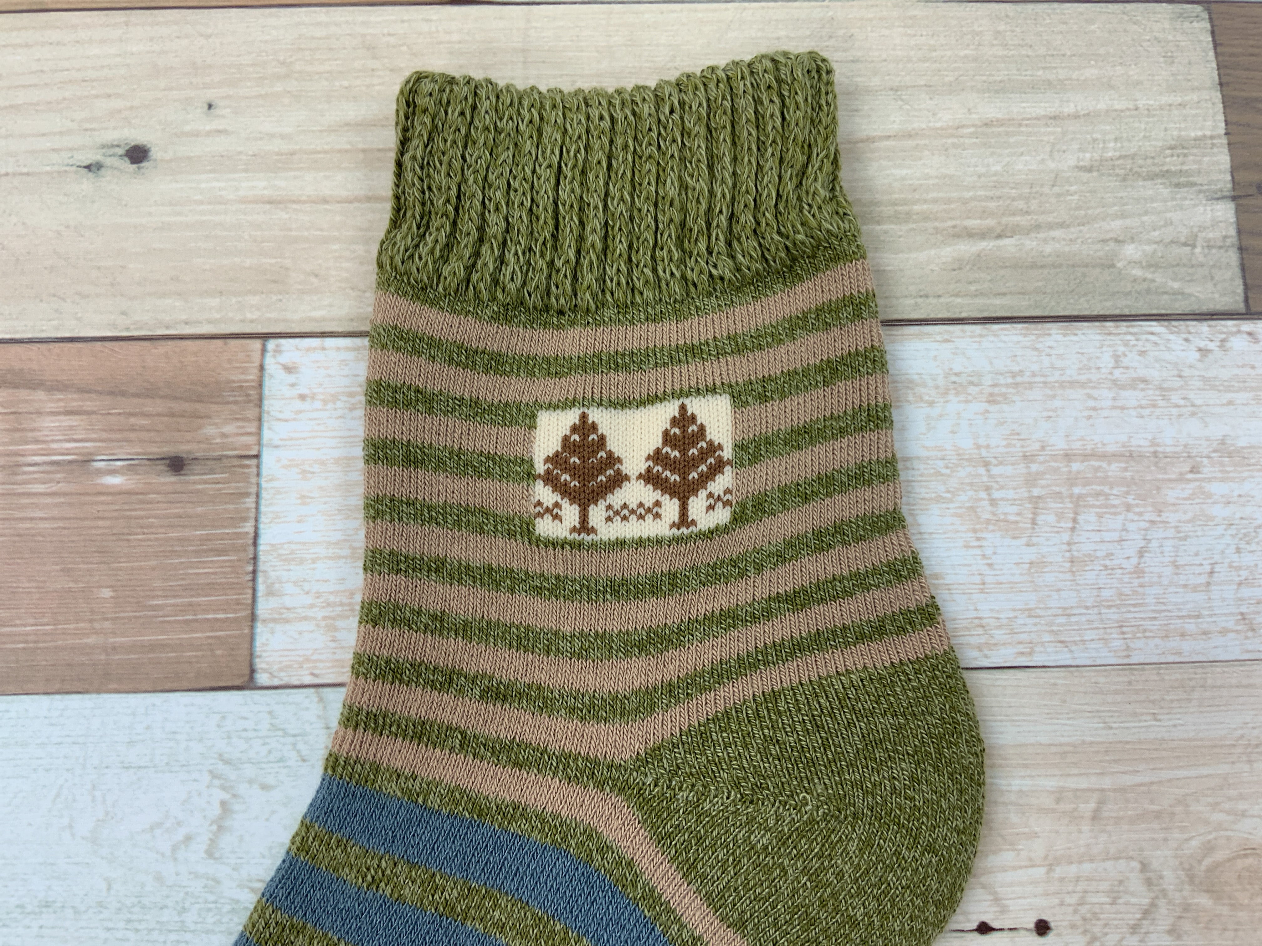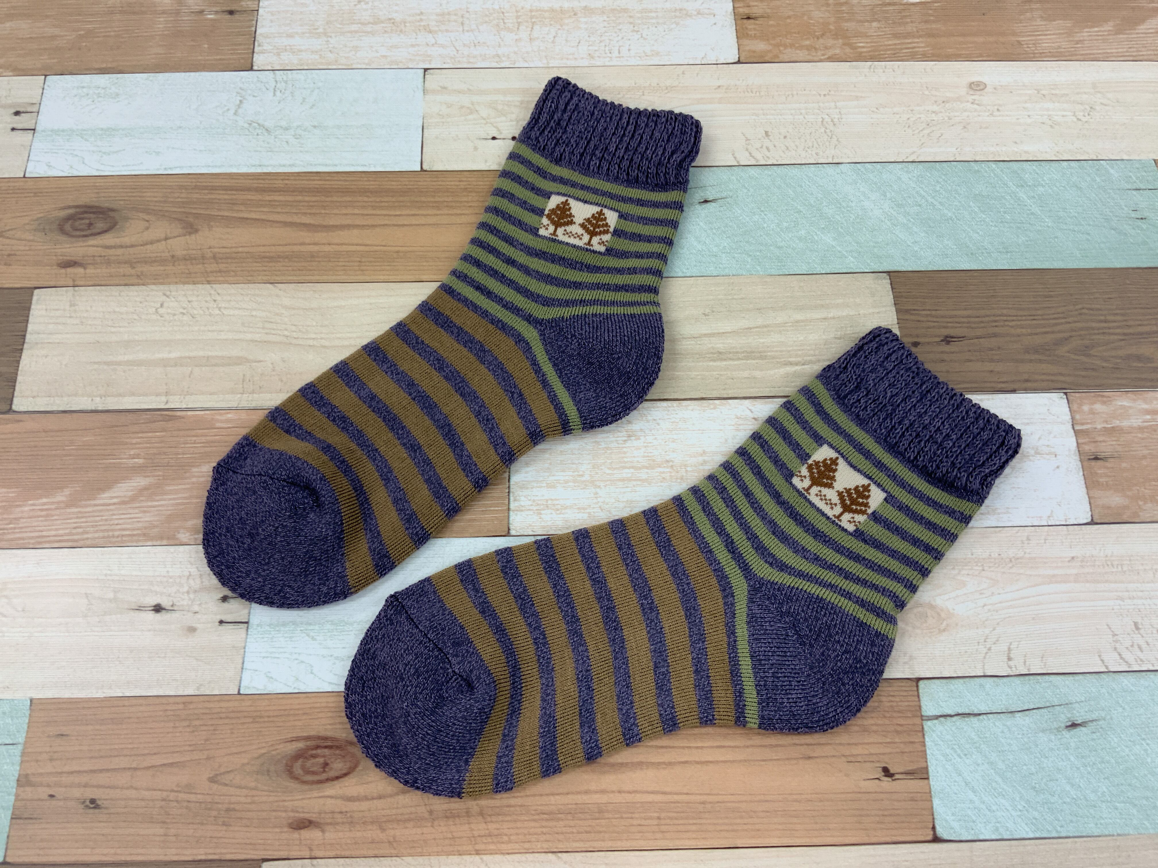 口ゴムゆったり パイル ボーダー・木 2P